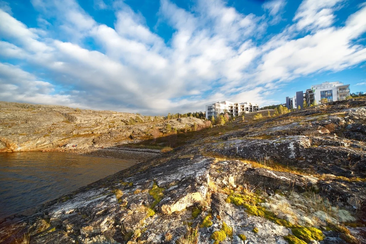 Some landscape architects use this project as an example that it is indeed possible to both build in and at the same time conserve nature. It almost looks as if the buildings have been hoisted down between the rocks, so that they do not rough in the terrain. Older trails have been maintained, and all the locals thus has easier access to the shore. The buildings are modern and comfortable, and at the same time they are safekeeping both the environment and the nature. The residents experience comfort, quietness and have a wonderful view. It invites us all to enjoy the wonderful arctic nature, practically right in the middle of the city center.